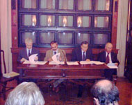 VISERTA: " vedo qui alcuni protagonisti del precedente tentativo di riforma, personaggi che trattarono con noi la possibilità di modificare l'impianto legislativo. In quella occasione non riuscimmo ad arrivare ad un esito positivo perché c'erano in campo due posizioni radicali. La proposta Carella ha trovato una via mediana estremamente positiva, ma anche molto creativa, perché riesce a coniugare due necessità inderogabili: dare al cittadino la sicurezza dell'assistenza farmaceutica, ma anche la possibilità ai giovani professionisti di dimostrare le proprie capacità professionali in un sistema di libero confronto anche delle capacità imprenditoriali".