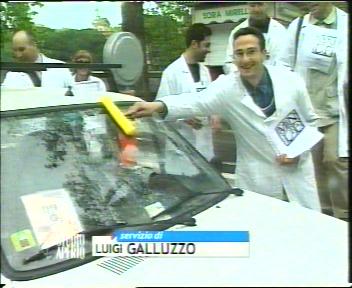 Con il cauduceo appuntato e il camice bianco, fermi ai semafori, lavano i vetri delle autovetture in sosta.